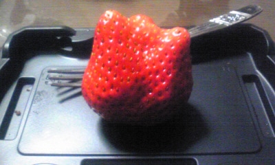 添付は弟の卒業祝いのケーキの後に食べたイチゴちゃん。