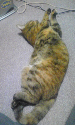 こんな風に締まりのないぼでーをさらして寝るうちのにゃんこ。