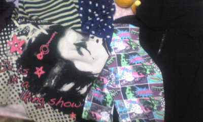上のレギンス二つ(ドット&ボーダー)は姉が初売りの時に寄った店で買ってくれた物。